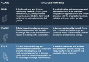 To transform communities by creating a global network of changemakers from diverse disciplines who collectively engage in volunteerism, learning, and grassroots action to advance well-being, social justice, and equity, dismantling systemic barriers to create a more just and inclusive society.