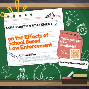 The School and Youth Engagement Interest Group is excited to share “Statement on the effects of law enforcement in school settings”, our policy statement recently published in the American Journal of Community Psychology. This open-access policy paper can be found at the following link: https://onlinelibrary.wiley.