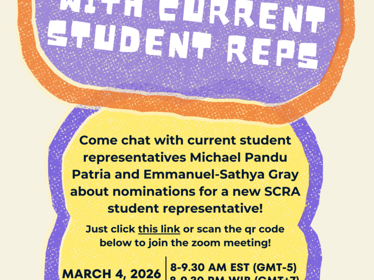 Letters of Intent, and any questions about the role or election process should be submitted to student representatives Michael Pandu Patria and Emmanuel-Sathya Gray at StudentReps@scra27.org.