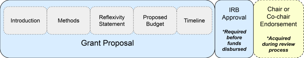 The Grant Proposal should be consolidated into one PDF document and submitted online, along with a PDF of the IRB/Ethics Approval, by April 22nd, 2026 April 15th, 2026. Information of a chair or co-chair who can be contacted to provide a project endorsement will be solicited in the form. After submission, please reach out to your endorser to inform them of your application and to look for an email requesting their endorsement. It may end up in a spam/junk folder.